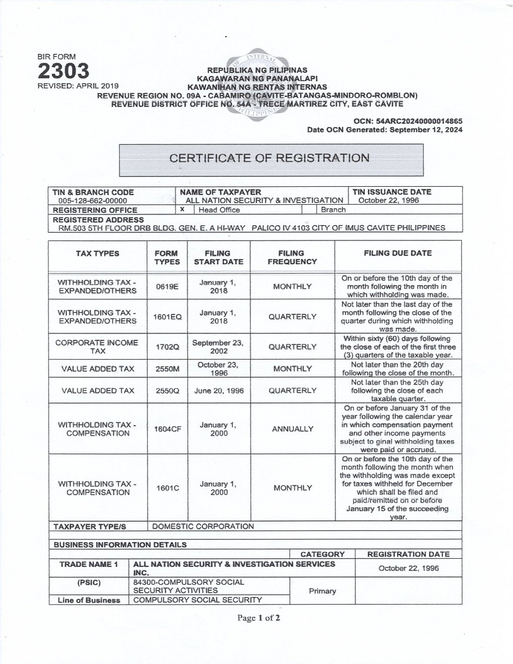 Certificates & Licenses SOSIA License to Operate SEC Certification BIR Registration DOLE Registration 174-17 PADPAO Certification SEC Amended BIR Certification Fire Safety Inspection Mayor's Business Permit Tax Clearance SSS Certification Sanitary Permit Certificates & Licenses Policies & Statement Resources Profile Calendar March 2026 M T W T F S S 1 2345678 9101112131415 16171819202122 23242526272829 3031 Follow Us on Facebook